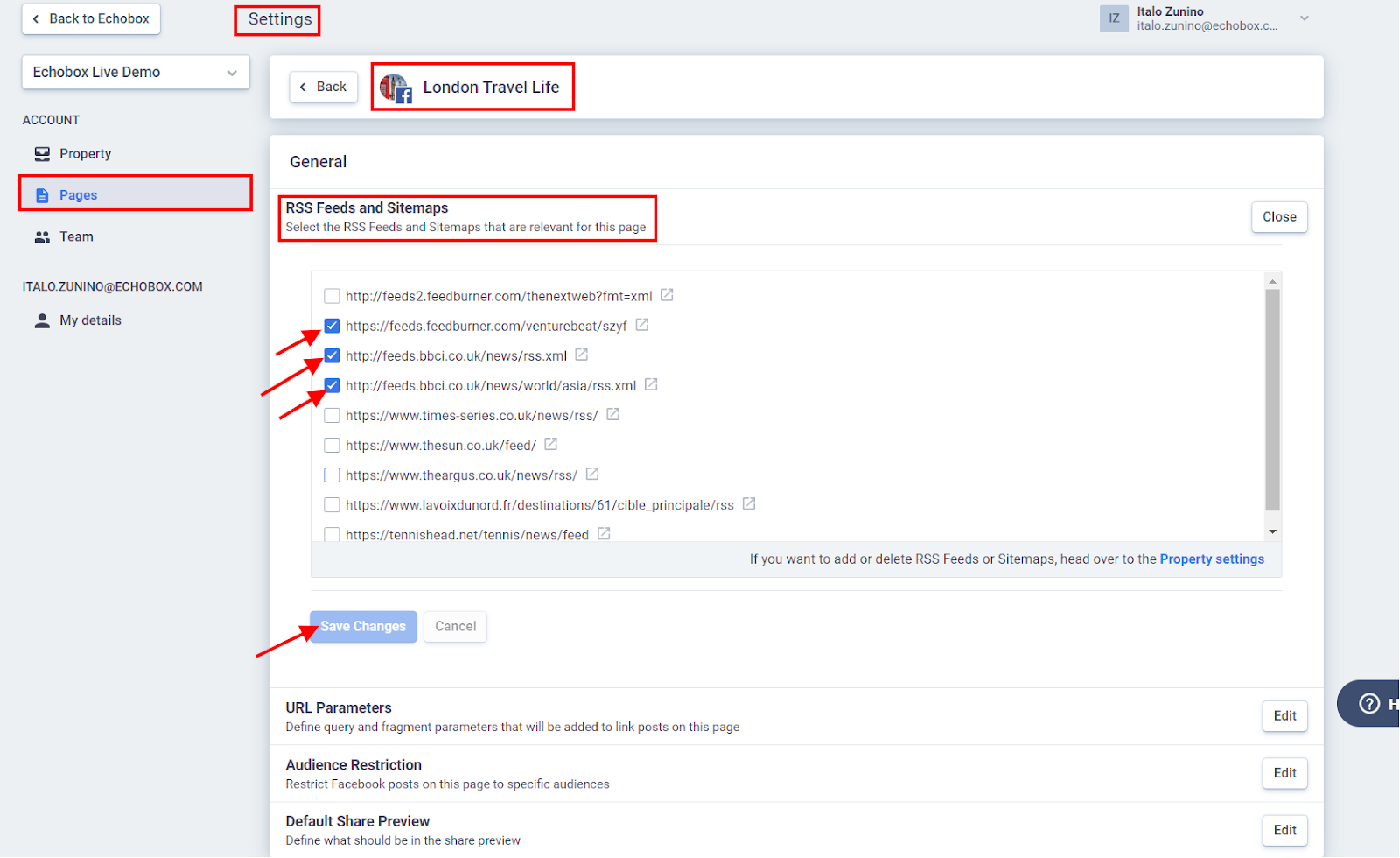 Within your Echobox, you can connect different RSS feeds to different social media pages to ensure that only relevant and specific articles are considered for a particular page. Echobox reads the connected RSS feeds every 60 seconds to search for new content. Once an article has been seen on the RSS feed, it will remain in your Echobox, even if it disappears from the RSS feed.