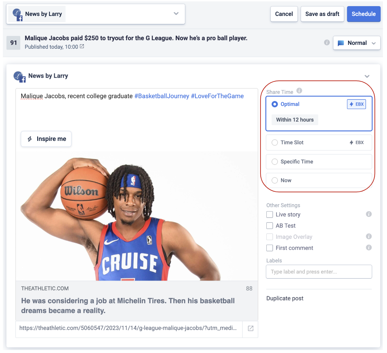 It’s where you can ensure your content is shared exactly as you want it, from editing your share message to choosing the share time.
