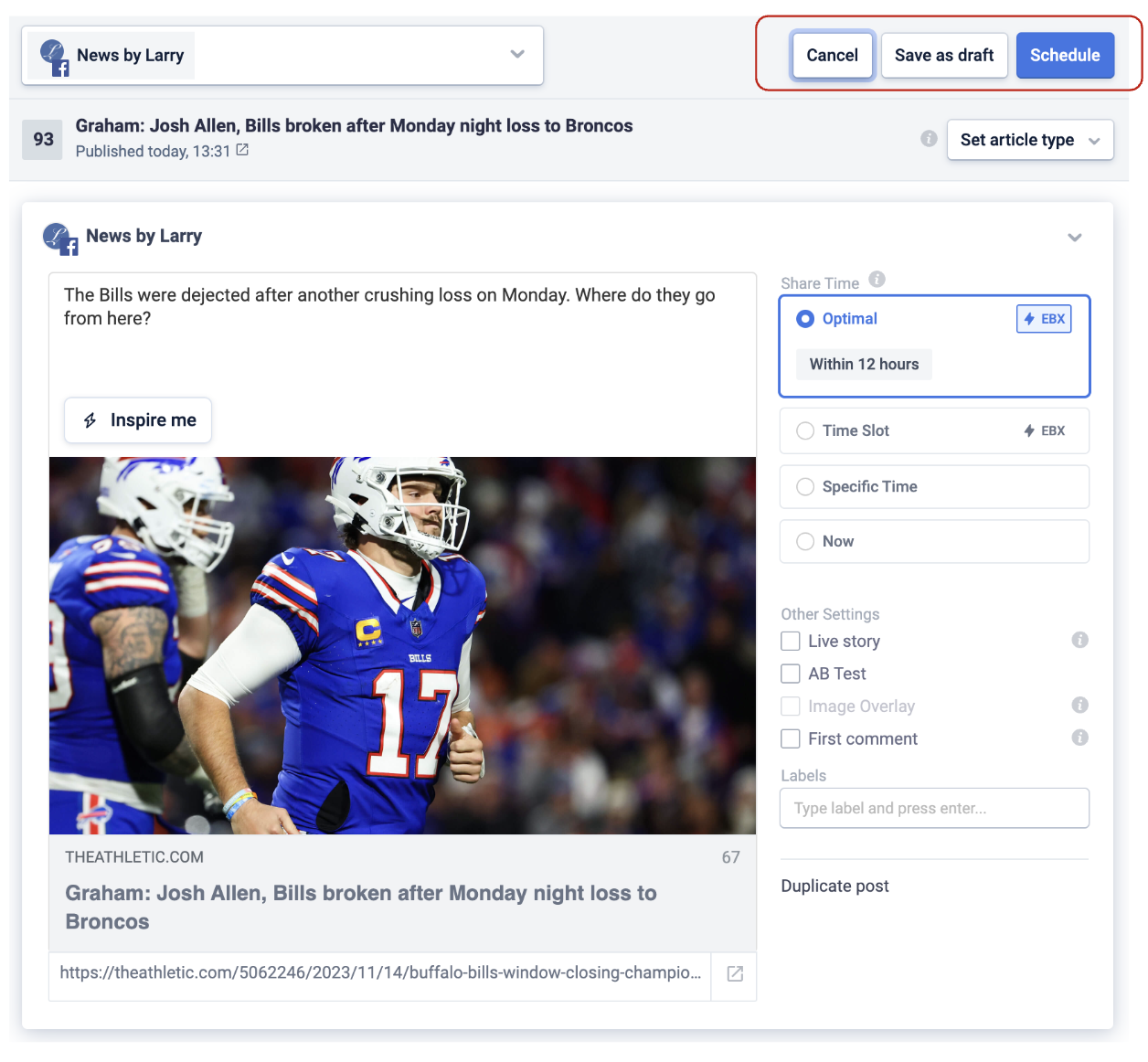 The right-hand side of the top bar is where you can schedule the share - or save it for later or cancel it altogether (Fig. 3).